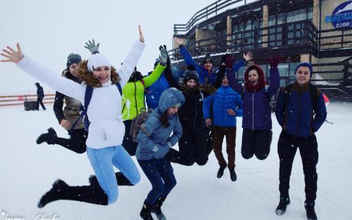 Теоретические знания, полученные на мастер-классе «Гостеприимство», участники экскурсионно-образовательной программы подкрепили подъёмом вверх по канатной дороге «Горная карусель» на высоту 2200 м – это позволило ребятам на практике познакомиться со всем спектром услуг горнолыжного курорта.
